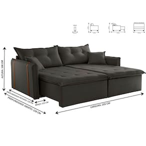 Dimensões: Altura: 100 cm Largura: 205 cm Profundidade Fechado: 110 cm Profundidade Aberto: 158 cm Peso: 84 kg