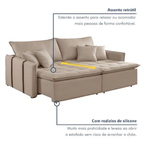 O Sofá Retrátil e Reclinável une design moderno, conforto e funcionalidade em um único móvel. Seu visual sofisticado com linhas retas e costuras capitonê transforma qualquer sala em um ambiente elegante e acolhedor. Possui assentos amplos e retráteis, perfeitos para relaxar, e encostos reclináveis que se ajustam à posição ideal de conforto. Os detalhes laterais em courino caramelo e a base amadeirada realçam o charme contemporân