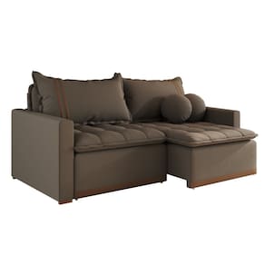 Sofá Cama em Madeira Eucalipto e Bouclê 200cm Flórida Marrom
