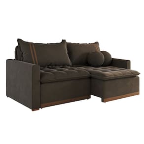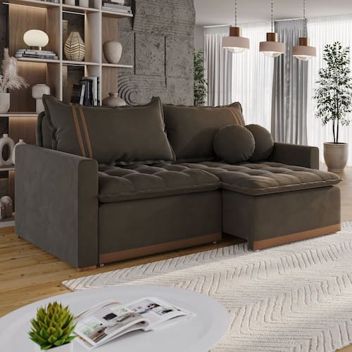 Sofá Cama em Madeira Eucalipto e Veludo 220cm Flórida Marrom