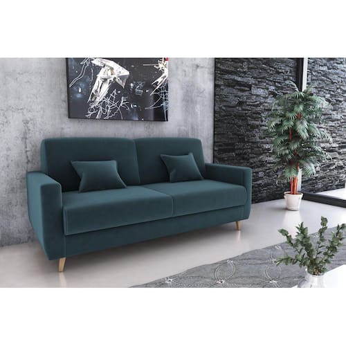 SOFÁ CAMA EMÍLIA OFERECE O DIFERENCIAL DE ABERTURA COM SISTEMA DE CATRACADE TRÊS PINOS, DISPONDO DE 03 POSIÇÕES (SENTADO, LEITURA E DESCANSO). ESTE SOFÁ É PRODUZIDO COM MADEIRA DE REFLORESTAMENTO E PARA DAR MAIS FLEXIBILIDADE E RESISTÊNCIA SÃO USADAS PERCINTAS ELÁSTICAS, E ESPUMA DE ÓTIMA QUALIDADE, ACOMODA ATÉ TRÊS PESSOAS COMO SOFÁ EDUAS COMO CAMA, ACOMPANHA DUAS ALMOFADAS. Espuma: D23 ASSENTO E BRAÇAS, ENCOSTO D20 +MANTA FIBRA SILICONADA Madeira: EUCALIPTO Percinta: CINTA ELÁSTICA Composição dos Pés: 4 PÉS DE MADEIRA Fixação: GRAMPOS E PARAFUSOS Composição da Embalagem: MALHA, PLÁSTICO E PAPELÃO Garantia: 90 DIAS Abertura: CATRACA Peso do Produto: 55 kg SUPORTA ATÉ 110 KG POR ASSENTO. Medidas Sentado: AxLxP (90x202x90)Cm Medidas Leitura: AxLxP (77x202x92)Cm Medidas Descanso: AxLxP (43x202x115)Cm Medidas Assento: AxLxP (33x180x18)Cm Medidas Encosto: AxLxP (50x180x18)Cm Medidas Braças: AxLxP (45x13x99)Cm Grantia: 90 dias. Recomendação de limpeza: Usa pano levemente umedecido com água, seguido por pano seco. Evitar exposição ao sol, para aumentar a durabilidade da cor do tecido. Não usar escova e/ou produtos abrasivos. Montagem: Montagem, desmontagem e outras instalações serão de responsabilidade do cliente. Não nos responsabilizamos, no ato da entrega, por subir escadas/elevadores ou pelo transporte por guincho em apartamentos. Eventuais despesas são de responsabilidade do comprador; Observações importantes: A tonalidade da cor do produto pode variar de acordo com a sua tela, a iluminação do ambiente ou sua percepção visual Lembrando que são fotos ilustrativas tratadas em estúdios podendo haver pequena diferença nas cores A montagem será de responsabilidade do comprador; Não nos responsabilizamos, no ato da entrega, por subir escadas/elevadores ou transporte por guincho em apartamentos. Eventuais despesas são de responsabilidade do comprador; Confira as dimensões deste produto e certifique-se de que passará normalmente por supostos elevadores, portas, escadas e/ou corredores de sua residência; Para mais informações, acesse nossa Central de Atendimento. Marca: LM DECOR