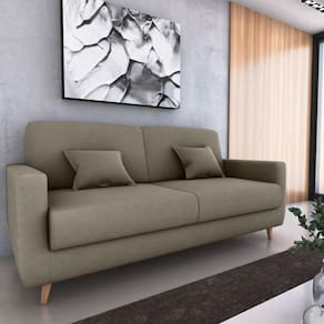 SOFÁ CAMA EMÍLIA OFERECE O DIFERENCIAL DE ABERTURA COM SISTEMA DE CATRACADE TRÊS PINOS, DISPONDO DE 03 POSIÇÕES (SENTADO, LEITURA E DESCANSO). ESTE SOFÁ É PRODUZIDO COM MADEIRA DE REFLORESTAMENTO E PARA DAR MAIS FLEXIBILIDADE E RESISTÊNCIA SÃO USADAS PERCINTAS ELÁSTICAS, E ESPUMA DE ÓTIMA QUALIDADE, ACOMODA ATÉ TRÊS PESSOAS COMO SOFÁ EDUAS COMO CAMA, ACOMPANHA DUAS ALMOFADAS.   Espuma: D23 ASSENTO E BRAÇAS, ENCOSTO D20 +MANTA FIBRA SILICONADA Madeira: EUCALIPTO Percinta: CINTA ELÁSTICA Composição dos Pés: 4 PÉS DE MADEIRA Fixação: GRAMPOS E PARAFUSOS Composição da Embalagem: MALHA, PLÁSTICO E PAPELÃO Garantia: 90 DIAS Abertura: CATRACA Peso do Produto: 55 kg SUPORTA ATÉ 110 KG POR ASSENTO.   Medidas Sentado: AxLxP (90x202x90)Cm Medidas Leitura: AxLxP (77x202x92)Cm Medidas Descanso: AxLxP (43x202x115)Cm Medidas Assento: AxLxP (33x180x18)Cm Medidas Encosto: AxLxP (50x180x18)Cm Medidas Braças: AxLxP (45x13x99)Cm   Grantia: 90 dias.    Recomendação de limpeza: Usa pano levemente umedecido com água, seguido por pano seco. Evitar exposição ao sol, para aumentar a durabilidade da cor do tecido. Não usar escova e/ou produtos abrasivos.   Montagem: Montagem, desmontagem e outras instalações serão de responsabilidade do cliente. Não nos responsabilizamos, no ato da entrega, por subir escadas/elevadores ou pelo transporte por guincho em apartamentos. Eventuais despesas são de responsabilidade do comprador;    Observações importantes: A tonalidade da cor do produto pode variar de acordo com a sua tela, a iluminação do ambiente ou sua percepção visual Lembrando que são fotos ilustrativas tratadas em estúdios podendo haver pequena diferença nas cores A montagem será de responsabilidade do comprador; Não nos responsabilizamos, no ato da entrega, por subir escadas/elevadores ou transporte por guincho em apartamentos. Eventuais despesas são de responsabilidade do comprador; Confira as dimensões deste produto e certifique-se de que passará normalmente por supostos elevadores, portas, escadas e/ou corredores de sua residência; Para mais informações, acesse nossa Central de Atendimento.