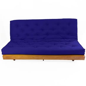 Material e estrutura: O colchão futon casal é fabricado em tecido de alta qualidade em Acquablock importado, seu enchimento é de mantas de algodão natural, manta de fibra siliconada estruturado por espuma ortopédica D28, possui amarras nas extremidades, para melhor fixação do futon. A estrutura é produzida em madeira nobre maciça de grápia, com pintura natural.