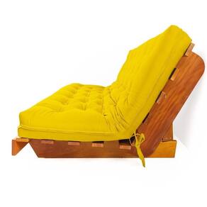 Material e estrutura: O colchão futon casal é fabricado em tecido de alta qualidade em Sarja Peletizada, seu enchimento é de mantas de algodão natural, manta de fibra siliconada estruturado por espuma ortopédica D28, possui amarras nas extremidades, para melhor fixação do futon. A estrutura é produzida em madeira nobre maciça de grápia, com pintura natural.