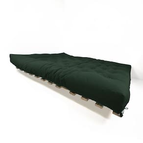 Material e estrutura: O colchão futon king é fabricado em tecido de alta qualidade em sarja peletizada 100% algodão, seu enchimento é de mantas de algodão natural, manta fibra siliconada estruturado por espuma ortopédica D28. Possui amarras nas extremidades, a estrutura é produzida em madeira maciça de pinus sem pintura.