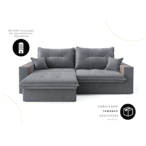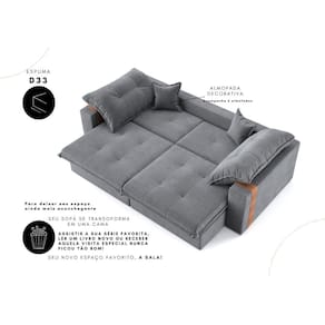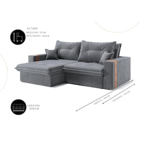 Sofá-cama Ipanema 3 Lugares Suede 200cm - Grafite