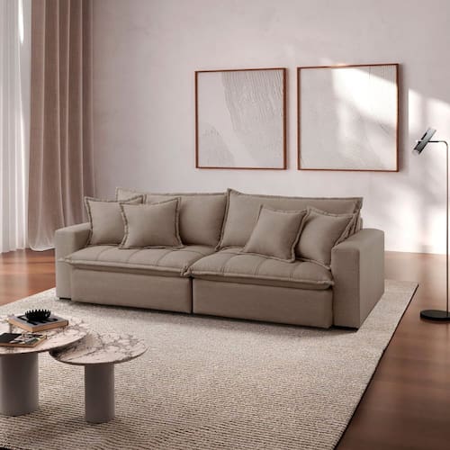 Em ambientes pequenos, a otimização do espaço é um ponto chave e para garantir maior conforto e mobilidade, o Sofá Cama Júpiter possui braços de apenas 15cm de largura, proporcionando um maior aproveitamento da área disponível na sua sala de estar. Produto Montado: Sim Almofada do assento: Fixa Almofada do encosto: Removível Altura do assento até o chão: 48.0000 Altura do Braço: 60 cm Altura do Encosto: 46 cm Altura dos Pés: 3 cm Ambiente Principal: Sala de Estar codigo_ean: 7909903909874 Complexidade da Montagem: Média: pode ser montado por mais de uma pessoa e/ou necessite de maior conhecimento para montagem Consistência do Assento: Médio Cor: Marrom Cor do Produto: Marrom Densidade do Assento: D-28 Enchimento do Assento: Hyper Soft Enchimento do Braço: Espuma D-14 Enchimento do Encosto: Fibra Siliconada Firmeza do Assento: Médio Informações Complementares: 04 Almofadas Decorativas Itens Inclusos: 01 Sofá Cama com 04 Almofadas Decorativas e Manual de Montagem Linha ou Coleção: Universo Manual de Especificação Técnica: https://product-hub-prd.madeiramadeira.com.br/938658/documents/b954b499-b75d-4b75-b1ed-da5aa4e4bd012302774204117254682726704.pdf Manual de Montagem e Instalação: https://product-hub-prd.madeiramadeira.com.br/938658/documents/2e0029af-19f4-4188-8737-f900eb34f98a2302773204117254682682738.pdf Material dos Pés: Pinus Medida como Cama (A x L x P): 48 x 200 x 150 Modelo: Retrátil e Reclinável Necessita Montagem: Sim Origem do Produto: Nacional Peso: 100,8 kg Pet Friendly: Não Possui Baú: Não Possui Percintas Elásticas: Sim Possui Pés: 08 Possui Rodízio: Sim Quantidade de Itens: 150 Reclinável: Sim Recomendações de Uso, Manutenção e Limpeza: Utilizar Pano Seco Revestimento do Assento: Linho Revestimento do Braço: Linho Revestimento do Encosto: Linho Sistema de Montagem: Encaixe Tecido Predominante: Linho Tipo de Assento: Regulável Tipo de Encosto: Regulável Tipo de Mola: Molas Ensacadas