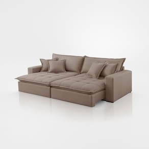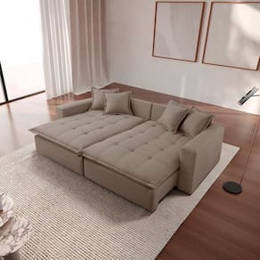 O Sofá Cama Júpiter LE Estofados vem com 04 almofadas decorativas e é a solução perfeita para quem tem pouco espaço disponível. Com ele você poderá acomodar suas visitas com conforto e praticidade. Produzido em madeira maciça de eucalipto, possui encosto removível com enchimento em fibra 100% de silicone, assento com pilllow de 15 CM com molas ensacadas e suporta até 300kg.