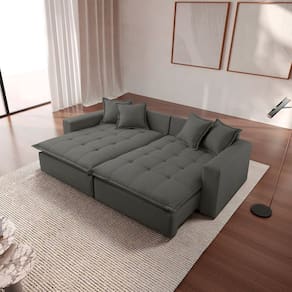 O Sofá Cama Júpiter LE Estofados vem com 04 almofadas decorativas e é a solução perfeita para quem tem pouco espaço disponível. Com ele você poderá acomodar suas visitas com conforto e praticidade. Produzido em madeira maciça de eucalipto, possui encosto removível com enchimento em fibra 100% de silicone, assento com pilllow de 15 CM com molas ensacadas e suporta até 300kg.