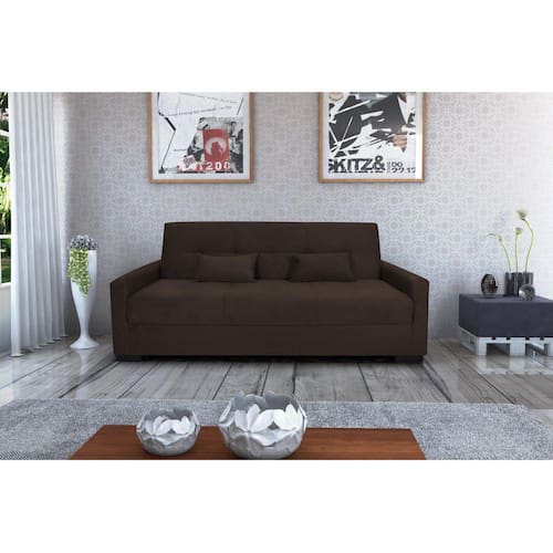 SOFÁ CAMA LAVINIA OFERECE O DIFERENCIAL DE ABERTURA COM SISTEMA DECATRACA DE TRÊS PINOS, DISPONDO DE 03 POSIÇÕES (SENTADO, LEITURA E DESCANSO). ESTE SOFÁ ÉPRODUZIDO COM MADEIRA DE REFLORESTAMENTO E PARA DAR MAIS FLEXIBILIDADE E RESISTÊNCIA SÃOUSADAS PERCINTAS ELÁSTICAS, MOLAS ESPIRAIS E ESPUMA DE ÓTIMA QUALIDADE, POSSUI UMTAMANHO DIFERENCIADO QUE PODE ACOMODAR ATÉ TRÊS PESSOAS COMO SOFÁ E DUAS COMO CAMA,ACOMPANHA DUAS ALMOFADAS.