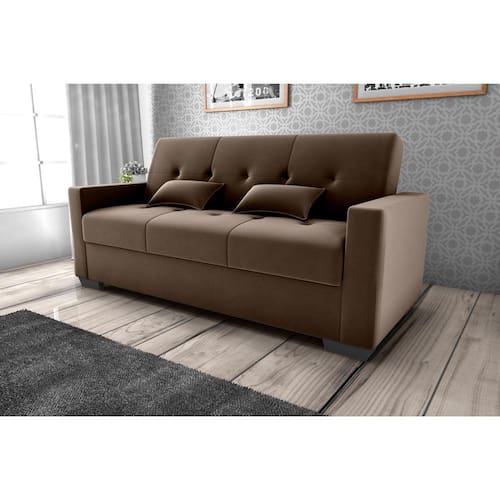 SOFÁ CAMA LAVINIA OFERECE O DIFERENCIAL DE ABERTURA COM SISTEMA DECATRACA DE TRÊS PINOS, DISPONDO DE 03 POSIÇÕES (SENTADO, LEITURA E DESCANSO). ESTE SOFÁ ÉPRODUZIDO COM MADEIRA DE REFLORESTAMENTO E PARA DAR MAIS FLEXIBILIDADE E RESISTÊNCIA SÃOUSADAS PERCINTAS ELÁSTICAS, MOLAS ESPIRAIS E ESPUMA DE ÓTIMA QUALIDADE, POSSUI UMTAMANHO DIFERENCIADO QUE PODE ACOMODAR ATÉ TRÊS PESSOAS COMO SOFÁ E DUAS COMO CAMA,ACOMPANHA DUAS ALMOFADAS.