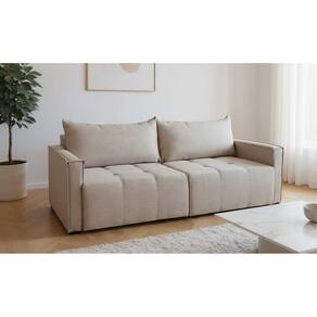 Sofá Cama Luxo Bruna Almofadas Soltas Espuma D30 com Manta Acrílica Vários Tecidos 2,00M - Bege | Cinza