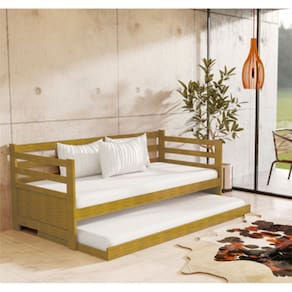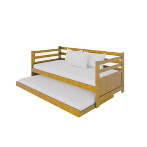 Sofá Cama Madeira Solteiro Vintage Enjoy Imbuia Acompanha Prateleira Rústica - Marrom
