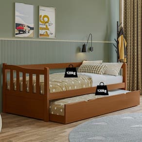 Sofá Cama de Madeira com Cama Auxiliar Solteiro ( Bicama )<br><br>