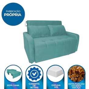 Produto: Sofá Amora | Conteúdo da Embalagem: Sofá Cama Amora | Nome do Simples no Fornecedor: Sofá Cama para Sala de Estar Amora New Veludo Chumbo | Altura do Produto (cm): 90 | Largura do Produto (cm): 138 | Comnto do Produto (cm): 97 | Altura do Produto com embalagem (cm): 87 | Largura do Produto com embalagem (cm): 140 | Comnto do Produto com embalagem (cm): 99 | Descrição do Tamanho: 90 X 138 X 97 cm | Peso do Produto com embalagem (Kg): | Peso do Produto (Kg): | Material da Estrutura: Madeira Maciça | Material para Filtro: Madeira | Instruções/Cuidados: Não deixe o móvel exposto ao sol. Evite com líquidos. | Estado de Origem: PR | Garantia do Fabricante: 3 meses contra defeitos de fabricação. Não cobrimos alterações e/ou montagem errada. | Garantia em Meses: 3 | Fabricado Por: Matrix | Vendido Por: Decor | Cômodo Indicado: Sala de Estar | Possui Pés: Sim | Volumes: 1 | Medidas Aberto: 45 X 138 X 186 cm | Medidas do Encosto: 47 X 110 X 16 cm | Medida do Assento: 45 X 110 X 66 cm | Medidas Braças: 50 X 14 X 87 cm | Peso Suportado: 100 Kg | Revestimento: Tecido Veludo | Material dos Pés: Polipropileno | Espuma: Acompanha Almofada | Tipo de produto: Sofá Cor: Verde Agua