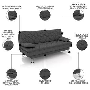 Que tal investir em um estofado que combina dupla funcionalidade? Estamos falando do Sofá Cama para Sala de Estar Quarto 193cm Bela M22 Linho Grafite, da Mpozenato.