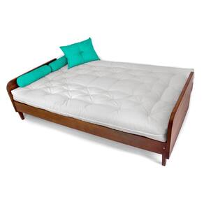 Material e estrutura: O colchão futon casal é fabricado em tecido de alta qualidade em Acquablock, seu enchimento é de mantas de algodão natural, manta fibra siliconada estruturado por espuma ortopédica D28. Possui amarras nas extremidades. A estrutura é produzida em madeira nobre grápia com pintura na cor imbuia.