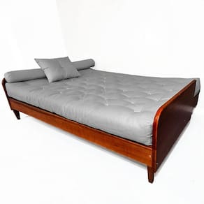 Peso do Produto:40 kgPeso Suportado: 400 kgMaterial e Estrutura:Colchão futon casal em tecido de alta qualidadeEnchimento de mantas de algodão natural e manta de fibra siliconadaEstrutura de espuma ortopédica D28Amarras nas extremidadesEstrutura em Madeira Maciça