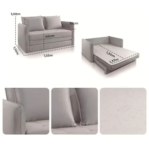 Sofá Cama Recife Casal Retrátil com Colchão Tecido Linho 155cm JC Estofados O Sofá Cama Recife Casal Retrátil com Colchão Tecido Linho 155cm JC Estofados é uma solução prática e confortável para sua casa. Com sua função retrátil, ele se transforma facilmente de um sofá para uma cama, ideal para acomodar visitas. O revestimento em linho confere um toque de elegância e modernidade, e o colchão já incluso garante o conforto necessário para uma boa noite de sono. Com 155cm de largura, ele se encaixa bem em diferentes espaços, combinando funcionalidade e design.\nMEDIDAS\nAltura 100 cm\nLargura 155 cm\nProfundidade Fechado 110 cm\nProfundidade Aberto 200 cm\nCARACTERÍSTICAS\nFabricante JC Estofados\nModelo Sofá Cama Recife\nGarantia 3 meses\nTipo de produto Sofá Cama\nAmbiente Sala\nAssento Assento de 14cm de Espuma D28\nEncosto Fixo com Almofadas Soltas Preenchidas com Fibra Siliconada\nAcompanha Almofadas Sim\nRevestimento Tecido Linho\nPossui Rodízios de Silicone Sim\nPillow nos Braços Não\nINFORMAÇÕES IMPORTANTES\nObjetos decorativos que porventura apareçam na foto, não acompanham o produto. Não nos responsabilizamos pela montagem/instalação dos produtos.\nMontagens, desmontagens e instalações são responsabilidades do cliente. Indicamos que contrate uma empresa de montagem ou um montador de sua confiança.\nAlém disso, favor verificar se os pés e acessórios estão dentro do forro inferior do produto. Em suma, todas as informações divulgadas sobre o produto são de responsabilidade do Fabricante.\nAs cores do produto podem variar de acordo com o seu monitor, a iluminação do ambiente em que você está e até mesmo a sua percepção visual. Além da cor, pequenos detalhes e acabamentos podem não ficar evidentes na foto, por isso as imagens são meramente ilustrativas