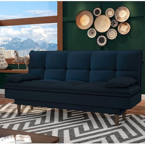 A tonalidade do tecido pode variar conforme o lote e a tela. Produto Montado: Sim Almofada do assento: Fixa Almofada do encosto: Fixa Altura do assento até o chão: 49.0000 Altura do Encosto: 51 cm Altura dos Pés: 15 cm Altura Máxima dos Pés: 15.0000 Ambiente Principal: Sala de Estar codigo_ean: 7900288106780 Complexidade da Montagem: Baixa: pode ser montado por uma pessoa sozinha Cor: Azul Cor do Produto: Azul Densidade do Assento: D-23 Enchimento do Assento: Espuma Enchimento do Encosto: Espuma Estilo de Braço: Sem Braços Firmeza do Assento: Médio Itens Inclusos: 1 Sofá, Kit Ferragens e Manual de Montagem Linha ou Coleção: Coleção Gold Manual de Montagem e Instalação: https://product-hub-prd.madeiramadeira.com.br/982329/documents/88e20f57-8ae9-4fae-b2fb-7265a1531aa684801742581184982329150684.pdf Marca: Arte Cúbica Estofados Material dos Pés: PVC Modelo: Somente Retrátil Necessita Montagem: Sim Origem do Produto: Nacional Peso: 46 kg Pet Friendly: Não Possui Baú: Não Possui Mola: Sim Possui Percintas Elásticas: Sim Possui Pés: 04 Possui Rodízio: Não Reclinável: Sim Recomendações de Uso, Manutenção e Limpeza: Não molhar o estofado, não deixar por longas horas exposto ao sol, usar apenas água na limpeza do estofado Sistema de Montagem: Parafusos Tecido Predominante: Veludo Tipo de Encosto: Regulável Tipo de Mola: Molas Bonnel Tipo de Sofá: Sofá Cama