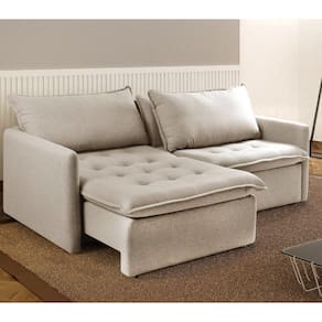 O sofá Califórnia é uma excelente escolha para quem quer aliar conforto e versatilidade no ambiente. Você pode escolher a melhor forma de usá-lo: recolhido ou estendido com o encosto completamente deitado. Eles são uma solução conveniente para espaços menores, quartos de hóspedes ou salas de estar onde você deseja aproveitar ao máximo o espaço disponível, tornando-o funcional tanto durante o dia quanto à noite. Os braços são estreitos proporcionando maior espaço útil para o assento. Possui a estrutura em eucalipto tratado e travamento da estrutura por grampos fixados com grampeadores pneumáticos. Assento com espuma D26 elástica, mola espiral e percintas elásticas de alta qualidade e resistência. Almofadas do encosto preenchidas 100% com fibra siliconada. Acompanha Almofadas extras: Não Almofada do assento: Fixa Almofada do encosto: Removível Altura do assento até o chão: 47 cm Altura do Encosto: 45 cm Ambiente Principal: Sala de Estar Complexidade da Montagem: Baixa: pode ser montado por uma pessoa sozinha Cor: Bege Cor do Produto: Bege Densidade do Assento: D-26 Densidade do Encosto: Camadas de Densidades Diferentes Enchimento do Assento: Espuma Enchimento do Encosto: Fibra Siliconada Estilo de Braço: Braços Quadrados Firmeza do Assento: Médio Itens Inclusos: 1 Sofá, Kit Ferragens e Manual de Montagem Linha ou Coleção: Califórnia Manual de Montagem e Instalação: https://product-hub-prd.madeiramadeira.com.br/868834/documents/f173cfb5-09f8-4936-bfc3-ceb2c3b3d04c1591738sofacalifornialink.pdf Material dos Pés: 08 pés em madeira e 04 pés rodízio de silicone Necessita Montagem: Sim Nível de Conforto: Firme Confortável Origem do Produto: Nacional Peso: 60 kg Pet Friendly: Não Possui Baú: Não Possui Entrada USB: Não Possui Percintas Elásticas: Sim Possui Pés: 08 Possui Rodízio: Sim Profundidade Quando Estendido: cm Recomendações de Uso, Manutenção e Limpeza: Utilizar aspirador de pó, escova com cerdas macias ou limpeza a seco. Não utilizar produtos químicos, abrasivos ou limpeza a vapor. Evitar exposição prolongada ao sol. Revestimento do Braço: Linho Rodízio com Trava: Não Sistema de Montagem: Macho e fêmea Suporta Até (kg): 360 kg Tecido Predominante: Linho Tipo de Encosto: Regulável Tipo de Mola: Molas Espirais Marca: Zurc Decor Ean: 7909903453483