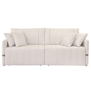 Revestido com o mais fino linho, oferece uma textura suave ao toque, enquanto os detalhes em sintético nos braços adicionam um toque de sofisticação. Os botões de madeira cuidadosamente inseridos destacam-se, proporcionando um visual clássico e atemporal. Para garantir o máximo conforto em sua Sala De Estar, este Sofá 3 Lugares acompanha almofadas e encosto com plumante, percintas elásticas e molas Bonnell, que juntas criam uma experiência de assento e sono excepcional. Os pés 3cm em madeira cor mel não só reforçam a robustez da estrutura, mas também complementam o design com sua beleza natural. Ah! Além de tudo, esse Sofá Retrátil possui rodízios em silicone facilitando a abertura. Ideal para quem busca praticidade sem abrir mão do estilo, este sofá-cama é uma adição luxuosa a qualquer ambiente.