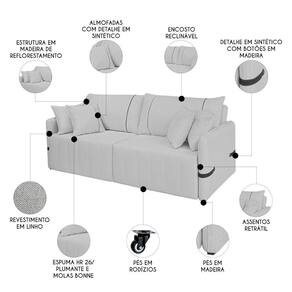 Este Sofá Cama Retrátil 220cm Essence D05 Linho Cinza/Sintético Preto, da Mpozenato é a combinação perfeita de funcionalidade e elegância.