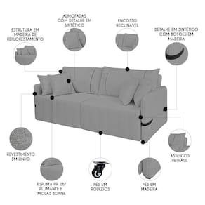 Revestido com o mais fino linho, oferece uma textura suave ao toque, enquanto os detalhes em sintético nos braços adicionam um toque de sofisticação. Os botões de madeira cuidadosamente inseridos destacam-se, proporcionando um visual clássico e atemporal. Para garantir o máximo conforto em sua Sala De Estar, este Sofá 4 Lugares acompanha almofadas e encosto com plumante, percintas elásticas e molas Bonnell, que juntas criam uma experiência de assento e sono excepcional. Os pés 3cm em madeira cor preto não só reforçam a robustez da estrutura, mas também complementam o design com sua beleza natural. Ah! Além de tudo, esse Sofá Retrátil possui rodízios em silicone facilitando a abertura. Ideal para quem busca praticidade sem abrir mão do estilo, este sofá-cama é uma adição luxuosa a qualquer ambiente.