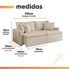MODELO: Sofá Cama Retrátil 3 Lugares 2,10m com Almofadas Linho Focus