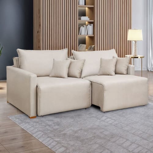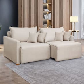 Estrutura em madeira, pés em eucalipto, revestimento em linho.Vendido e entregue por MadeiraMadeira