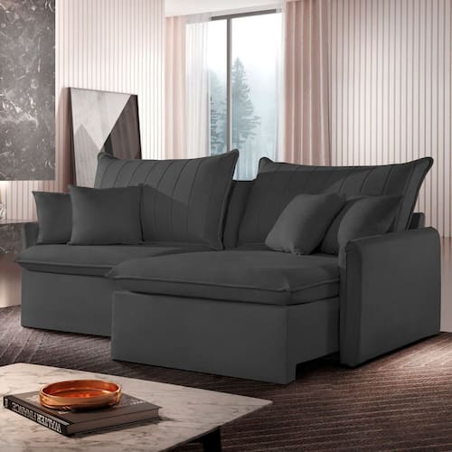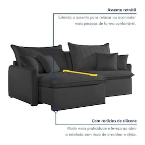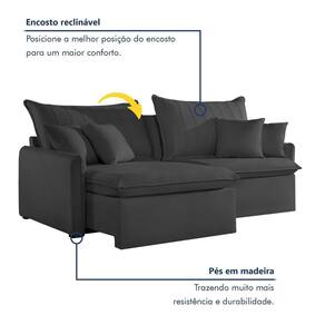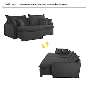 Feito com madeira de eucalipto de reflorestamento, é sustentável, durável e oferece ótima sustentação com seu assento de percintas elásticas, molas bonnel e espuma D26. O encosto em espuma D18 assegura conforto prolongado. Bipartido para fácil transporte, é prático e elegante, trazendo sofisticação ao seu lar. Produto Montado: Sim Almofada do assento: Fixa Almofada do encosto: Removível Ambiente Principal: Sala de Estar codigo_ean: 7900288016010 Complexidade da Montagem: Baixa: pode ser montado por uma pessoa sozinha Cor: Grafite Cor do Produto: Grafite Densidade do Assento: D-26 Enchimento do Assento: Espuma Enchimento do Braço: Espuma D-28 Enchimento do Encosto: Fibra Siliconada Estilo de Braço: Braços Quadrados Firmeza do Assento: Firme Itens Inclusos: 1 Sofá e Manual de Montagem. Largura do Braço: 10 cm Linha ou Coleção: Colibri Manual de Montagem e Instalação: https://product-hub-prd.madeiramadeira.com.br/969076/documents/6c730178-d350-4dd5-bc31-39c21b98b137253700573217308244087537.pdf Marca: CabeCasa MadeiraMadeira Material dos Pés: Madeira Medida como Cama (A x L x P): 75cmx200cmx158cm Modelo: Retrátil e Reclinável Necessita Montagem: Sim Origem do Produto: Nacional Peso: 81 kg Pet Friendly: Não Possui Baú: Não Possui Mola: Sim Possui Percintas Elásticas: Sim Possui Pés: 08 Possui Rodízio: Sim Profundidade Quando Estendido: 158 cm Profundidade quando extendido: 158.0000 Reclinável: Sim Recomendações de Uso, Manutenção e Limpeza: Para limpar, utilize pano seco ou papel absorvente. Não armazenar em local úmido. Não usar produtos químicos como detergente, cloro, alvejantes entre outros. Evitar exposição a luz solar direta por longos períodos. O consumidor perderá total garantia se for detectado dano no produto causadas por animais! Revestimento do Assento: Veludo Revestimento do Braço: Veludo Revestimento do Encosto: Veludo Sistema de Montagem: Encaixe. Tecido Predominante: Veludo Tipo de Assento: Fixo Tipo de Encosto: Regulável Tipo de Sofá: Sofá Cama