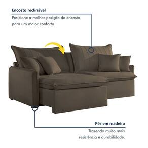 Feito com madeira de eucalipto de reflorestamento, é sustentável, durável e oferece ótima sustentação com seu assento de percintas elásticas, molas bonnel e espuma D26. O encosto em espuma D18 assegura conforto prolongado. Bipartido para fácil transporte, é prático e elegante, trazendo sofisticação ao seu lar. Produto Montado: Sim Almofada do assento: Fixa Almofada do encosto: Removível Ambiente Principal: Sala de Estar codigo_ean: 7900288016126 Complexidade da Montagem: Baixa: pode ser montado por uma pessoa sozinha Cor: Cinza Rústico Cor do Produto: Cinza Rústico Densidade do Assento: D-26 Enchimento do Assento: Espuma Enchimento do Braço: Espuma D-28 Enchimento do Encosto: Fibra Siliconada Estilo de Braço: Braços Quadrados Firmeza do Assento: Firme Itens Inclusos: 1 Sofá e Manual de Montagem. Largura do Braço: 10 cm Linha ou Coleção: Colibri Manual de Montagem e Instalação: https://product-hub-prd.madeiramadeira.com.br/969087/documents/76be4369-f90f-4521-a31e-768a00f0c7b9253701473217308244537298.pdf Marca: CabeCasa MadeiraMadeira Material dos Pés: Madeira Medida como Cama (A x L x P): 75cmx220cmx158cm Modelo: Retrátil e Reclinável Necessita Montagem: Sim Origem do Produto: Nacional Peso: 88,4 kg Pet Friendly: Sim Possui Baú: Não Possui Mola: Sim Possui Percintas Elásticas: Sim Possui Pés: 08 Possui Rodízio: Sim Profundidade Quando Estendido: 158 cm Profundidade quando extendido: 158.0000 Reclinável: Sim Recomendações de Uso, Manutenção e Limpeza: Para limpar, utilize pano seco ou papel absorvente. Não armazenar em local úmido. Não usar produtos químicos como detergente, cloro, alvejantes entre outros. Evitar exposição a luz solar direta por longos períodos. O consumidor perderá total garantia se for detectado dano no produto causadas por animais! Revestimento do Assento: Neruda Revestimento do Braço: Neruda Revestimento do Encosto: Neruda Sistema de Montagem: Encaixe. Tecido Predominante: Pet Friendly Tipo de Assento: Fixo Tipo de Encosto: Regulável Tipo de Sofá: Sofá Cama