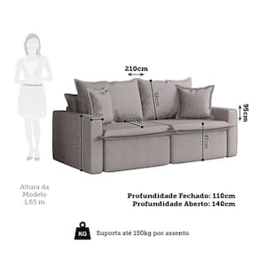 O Sofá León é uma escolha versátil para quem busca conforto e praticidade em um só produto. Seus braços de 15 cm equilibram estética e funcionalidade, enquanto os rodízios garantem mobilidade para diferentes usos. O estofamento é estruturado em Madeira Maciça com percintas elásticas e molas espirais, proporcionando maior resistência. Com almofadas soltas e função cama, adapta-se a múltiplas necessidades, além de oferecer um toque leve e elegante para ambientes contemporâneos. Produto Montado: Não Acompanha Almofadas extras: 02 Almofada do assento: Fixa Almofada do encosto: Removível Altura do assento até o chão: 47.0000 Altura do Encosto: 58 cm Altura dos Pés: 3 cm Altura Máxima dos Pés: 3.0000 Ambiente Principal: Sala de Estar Bipartida: Sim codigo_ean: 7900288217653 Cor: Linho Bege Cinza Cor do Produto: Linho Bege Cinza Densidade do Assento: D-28 Enchimento do Assento: Espuma Estilo de Braço: Braços Quadrados Firmeza do Assento: Médio Informações Complementares: Estrutura em Madeira Maciça e MDF. Assento com espuma D-28, Percintas elásticas e molas espirais. Braços com espuma D-26. Encosto e almofadas em Fibra Siliconada. Percintas elástica também no encosto. Rodízios em silicone. Itens Inclusos: 1 Sofá e 2 Almofadas Largura do Braço: 15 cm Linha ou Coleção: León Marca: Espresso Móveis Material dos Pés: Madeira Maciça Necessita Montagem: Não Origem do Produto: Nacional Peso: 46 kg Pet Friendly: Não Possui Baú: Não Possui Mola: Sim Possui Percintas Elásticas: Sim Possui Pés: 04 Possui Rodízio: Sim Profundidade Quando Estendido: 140 cm Profundidade quando extendido: 140.0000 Quantidade de Estágios do Encosto: 3 Recomendações de Uso, Manutenção e Limpeza: Para limpeza utilizar somente pano limpo e macio, ligeiramente umedecido em água (apenas o bastante para remover a poeira), seguido de um pano seco. Rodízio com Trava: Não Suporta Até (kg): 300 kg Tecido Predominante: Linho Tipo de Encosto: Regulável Tipo de Mola: Molas Espirais Tipo de Sofá: Sofá Cama