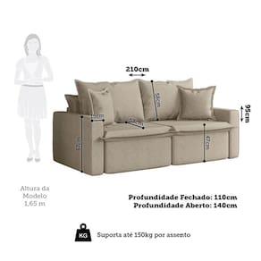 O Sofá León é uma escolha versátil para quem busca conforto e praticidade em um só produto. Seus braços de 15 cm equilibram estética e funcionalidade, enquanto os rodízios garantem mobilidade para diferentes usos. O estofamento é estruturado em Madeira Maciça com percintas elásticas e molas espirais, proporcionando maior resistência. Com almofadas soltas e função cama, adapta-se a múltiplas necessidades, além de oferecer um toque leve e elegante para ambientes contemporâneos. Produto Montado: Não Acompanha Almofadas extras: 02 Almofada do assento: Fixa Almofada do encosto: Removível Altura do assento até o chão: 47.0000 Altura do Encosto: 58 cm Altura dos Pés: 3 cm Altura Máxima dos Pés: 3.0000 Ambiente Principal: Sala de Estar Bipartida: Sim codigo_ean: 7900288217660 Cor: Linho Bege Médio Cor do Produto: Linho Bege Médio Densidade do Assento: D-28 Enchimento do Assento: Espuma Estilo de Braço: Braços Quadrados Firmeza do Assento: Médio Informações Complementares: Estrutura em Madeira Maciça e MDF. Assento com espuma D-28, Percintas elásticas e molas espirais. Braços com espuma D-26. Encosto e almofadas em Fibra Siliconada. Percintas elástica também no encosto. Rodízios em silicone. Itens Inclusos: 1 Sofá e 2 Almofadas Largura do Braço: 15 cm Linha ou Coleção: León Marca: Espresso Móveis Material dos Pés: Madeira Maciça Necessita Montagem: Não Origem do Produto: Nacional Peso: 46 kg Pet Friendly: Não Possui Baú: Não Possui Mola: Sim Possui Percintas Elásticas: Sim Possui Pés: 04 Possui Rodízio: Sim Profundidade Quando Estendido: 140 cm Profundidade quando extendido: 140.0000 Quantidade de Estágios do Encosto: 3 Recomendações de Uso, Manutenção e Limpeza: Para limpeza utilizar somente pano limpo e macio, ligeiramente umedecido em água (apenas o bastante para remover a poeira), seguido de um pano seco. Rodízio com Trava: Não Suporta Até (kg): 300 kg Tecido Predominante: Linho Tipo de Encosto: Regulável Tipo de Mola: Molas Espirais Tipo de Sofá: Sofá Cama