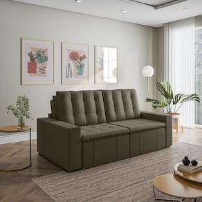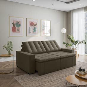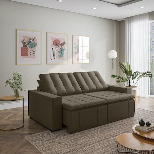 O Sofá Cama Palmeira MadeiraMadeira é a solução perfeita para quem tem pouco espaço disponível. Com ele você poderá acomodar suas visitas com conforto e praticidade. Produzido em madeira maciça de eucalipto, suporta até 400kg. Depois nos conte como foi a experiência de compra e como ficou seu ambiente nos comentários! Acompanha Almofadas extras: Não Almofada do assento: Fixa Almofada do encosto: Removível Altura do assento até o chão: 48 Altura do Encosto: 58 Altura dos Pés: 3 Ambiente Principal: Sala de Estar Complexidade da Montagem: Baixa: pode ser montado por uma pessoa sozinha Cor: Grafite Cor do Produto: Grafite Densidade do Assento: D-23 Densidade do Encosto: Camadas de Densidades Diferentes Enchimento do Assento: Espuma Enchimento do Encosto: Fibra Siliconada Estilo de Braço: Braços Quadrados Firmeza do Assento: Médio Informações Complementares: Densidade Braço D19. Enchimento do encosto: fibra siliconada com flocos de espuma envolvidas com manta siliconada. Itens Inclusos: Sofá, 8 pés e Manual de Montagem Linha ou Coleção: Palmeira Manual de Montagem e Instalação: https://product-hub-prd.madeiramadeira.com.br/877876/documents/22421de9-178b-4336-98de-5f9e44f8baednualSofCamaPalmeiraSlimalt.pdf Material dos Pés: Polimero Necessita Montagem: Sim Nível de Conforto: Macio Origem do Produto: Nacional Peso: 89 Pet Friendly: Não Possui Entrada USB: Não Possui Percintas Elásticas: Sim Possui Pés: 08 Possui Rodízio: Sim Profundidade Quando Estendido: 148 Recomendações de Uso, Manutenção e Limpeza: Evitar exposição direta à luz solar, limpar com escova macia e aspirar o pó semanalmente, não utilizar produtos químicos, removedores, alvejantes, etc. Evite exercer pressão excessiva sobre determinada partes do estofado, não utilizar para limpeza equipamentos a vapor de água. Resistente à Chuva: Não Revestimento do Braço: Veludo Rodízio com Trava: Não Sistema de Montagem: Parafusos e Engates Suporta Até (kg): 200 Tecido Predominante: Veludo Tipo de Encosto: Regulável Tipo de Mola: Molas Bonnel Ean: 7909903474754