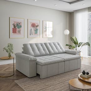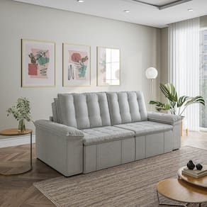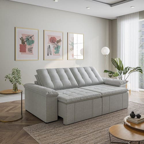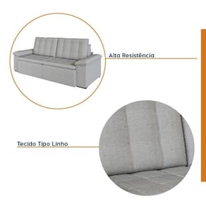 Sofá Cama Retrátil e Reclinável 3 Lugares 260cm em Linho com Molas Palmeira Cabecasa Madeiramadeira Prata