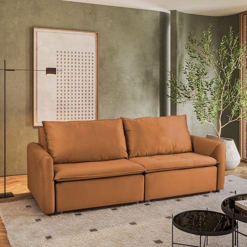 Versatilidade define o Sofá Greta, além de sofá, ele se transforma em uma cama. Além de otimizar o espaço, pois não possui caixa atrás do encosto. Quando esta no modo cama o sofá fica com 1,40m de profundidade, sendo o assento com 1,28m. 832547: 847885 =B2=A2: =B37=A37 Acompanha Almofadas extras: Não Almofada do assento: Fixa Almofada do encosto: Removível Altura do assento até o chão: 48 Altura do Encosto: 90 Altura dos Pés: 5 Ambiente Principal: Sala de Estar Complexidade da Montagem: Baixa: pode ser montado por uma pessoa sozinha Cor: Terracota Cor do Produto: Terracota Densidade do Assento: D-24 Densidade do Encosto: D-24 Enchimento do Assento: Espuma Enchimento do Braço: Espuma D-18 Enchimento do Encosto: Fibra Siliconada Estilo de Braço: Braços Redondos Firmeza do Assento: Médio Itens Inclusos: 1 Sofá Cama, Manual de Montagem. Manual de Montagem e Instalação: https://cdn2.madeiramadeira.com.br/atributo/takei-estofados/1322780-sofA-cama-greta.pdf Material dos Pés: PVC Medida como Cama (A x L x P): 90x225x140 Modelo: Sofá Bipartido Necessita Montagem: Sim Origem do Produto: Nacional Peso: 77 Pet Friendly: Não Possui Baú: Não Possui Percintas Elásticas: Sim Possui Pés: 08 Possui Rodízio: Sim Profundidade Quando Estendido: cm Reclinável: Sim Recomendações de Uso, Manutenção e Limpeza: Evitar exposição direta à luz solar, limpar com escova macia e aspirar o pó semanalmente. Não utilizar produtos químicos, removedores, alvejantes, etc. Revestimento do Assento: Veludo Revestimento do Braço: Veludo Revestimento do Encosto: Veludo Rodízio com Trava: não Sistema de Montagem: Bucha, pés com rosca soberba e engates Tecido Predominante: Veludo Tipo de Assento: Regulável Tipo de Encosto: Regulável Tipo de Mola: Molas Bonnel