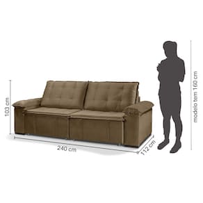 O Sofá Cama Palmeira MadeiraMadeira é a solução perfeita para quem tem pouco espaço disponível. Com ele você poderá acomodar suas visitas com conforto e praticidade. Produzido em madeira maciça de eucalipto, com as seguintes medidas (A x L x P): 103cm x 240cm x 112cm. Depois nos conte como foi a experiência de compra e como ficou seu ambiente nos comentários! Acompanha Almofadas extras: Não Almofada do assento: Fixa Almofada do encosto: Removível Altura do assento até o chão: 48 cm Altura do Encosto: 58 cm Altura dos Pés: 4 cm Ambiente Principal: Sala de Estar Complexidade da Montagem: Baixa: pode ser montado por uma pessoa sozinha Cor: Bege Cor do Produto: Bege Cor Predominante: Bege Densidade do Assento: D-23 Densidade do Encosto: Camadas de Densidades Diferentes Enchimento do Assento: Espuma Enchimento do Braço: Fibra Siliconada Enchimento do Encosto: Fibra Siliconada Estilo de Braço: Braços Pillow Top Firmeza do Assento: Macio Informações Complementares: Densidade Braço D19. Enchimento do encosto: fibra siliconada com flocos de espuma envolvidas com manta siliconada. Itens Inclusos: 1 Sofá, Acessórios e Instrução de Montagem Linha ou Coleção: Palmeira Manual de Montagem e Instalação: https://cdn2.madeiramadeira.com.br/atributo/takei-estofados/849503-653003.pdf Material dos Pés: Madeira Eucalipto Medida como Cama (A x L x P): 72cm x 240cm x 148cm Modelo: Sofá Bipartido Necessita Montagem: Sim Origem do Produto: Nacional Peso: 79 kg Pet Friendly: Não Possui Baú: Não Possui Percintas Elásticas: Sim Possui Pés: 08 Possui Rodízio: Sim Reclinável: Sim Recomendações de Uso, Manutenção e Limpeza: Evitar exposição direta à luz solar, limpar com escova macia e aspirar o pó semanalmente, não utilizar produtos químicos, removedores, alvejantes, etc. Evite exercer pressão excessiva sobre determinada partes do estofado, não utilizar para limpeza equipamentos a vapor de água. Revestimento do Assento: Veludo Revestimento do Braço: Veludo Revestimento do Encosto: Veludo Rodízio com Trava: Não Sistema de Montagem: Parafusos e Engates Tamanho: Tecido Predominante: Veludo Tipo de Assento: Fixo Tipo de Encosto: Regulável Tipo de Mola: Molas Bonnel