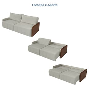 Além da estética impecável, o conforto é garantido pelo assento em espuma D28 Supersoft, percintas elásticas e molas Bonnel, que proporcionam maciez e durabilidade. As almofadas soltas no encosto, preenchidas com fibra siliconada, adicionam ainda mais aconchego. Para quem busca versatilidade, o encosto reclinável conta com sete posições e, no último ajuste, transforma o sofá em uma confortável cama. O assento retrátil, com mecanismo metálico resistente, amplia a área de descanso sem esforço.