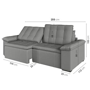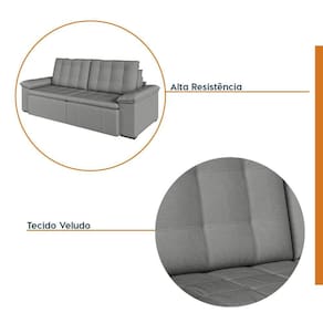 O Sofá Cama Palmeira MadeiraMadeira é a solução perfeita para quem tem pouco espaço disponível. Com ele você poderá acomodar suas visitas com conforto e praticidade. Produzido em madeira maciça de eucalipto, suporta até 400kg. Depois nos conte como foi a experiência de compra e como ficou seu ambiente nos comentários! Acompanha Almofadas extras: Não Almofada do assento: Fixa Almofada do encosto: Removível Altura do assento até o chão: 48 Altura do Encosto: 58 Altura dos Pés: 3 Ambiente Principal: Sala de Estar Complexidade da Montagem: Baixa: pode ser montado por uma pessoa sozinha Cor: Cinza Cor do Produto: Cinza Densidade do Assento: D-23 Densidade do Encosto: Camadas de Densidades Diferentes Enchimento do Assento: Espuma Enchimento do Encosto: Fibra Siliconada Estilo de Braço: Braços Quadrados Firmeza do Assento: Médio Informações Complementares: Densidade Braço D19. Enchimento do encosto: fibra siliconada com flocos de espuma envolvidas com manta siliconada. Itens Inclusos: 1 Sofá, Kit Ferragens e Manual de Montagem Linha ou Coleção: Palmeira Manual de Montagem e Instalação: https://product-hub-prd.madeiramadeira.com.br/879715/documents/9be3d4fa-62a9-472b-83b5-b3f7254f8aaaanualsofapalmeira240260280.pdf Material dos Pés: Polimero Modelo: Retrátil e Reclinável Necessita Montagem: Sim Nível de Conforto: Macio Origem do Produto: Nacional Peso: 93 Pet Friendly: Não Possui Entrada USB: Não Possui Percintas Elásticas: Sim Possui Pés: 08 Possui Rodízio: Sim Profundidade Quando Estendido: 148 Recomendações de Uso, Manutenção e Limpeza: Evitar exposição direta à luz solar, limpar com escova macia e aspirar o pó semanalmente, não utilizar produtos químicos, removedores, alvejantes, etc. Evite exercer pressão excessiva sobre determinada partes do estofado, não utilizar para limpeza equipamentos a vapor de água. Resistente à Chuva: Não Revestimento do Braço: Veludo Rodízio com Trava: Não Sistema de Montagem: Parafusos e Engates Tecido Predominante: Veludo Tipo de Encosto: Regulável Tipo de Mola: Molas Bonnel
