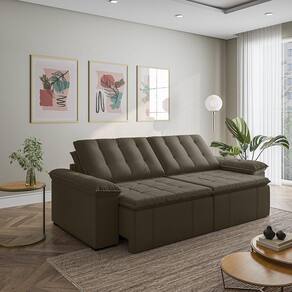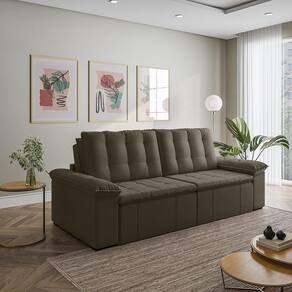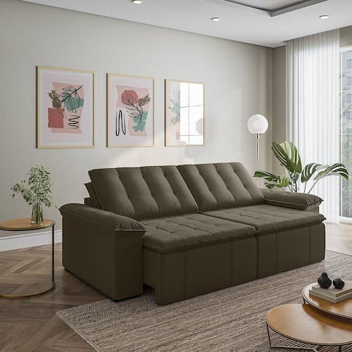 Sofá Cama Retrátil e Reclinável 4 Lugares 280cm em Veludo com Molas Palmeira Cabecasa Madeiramadeira Grafite - Cinza
