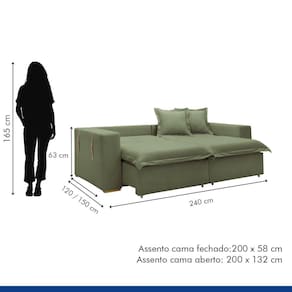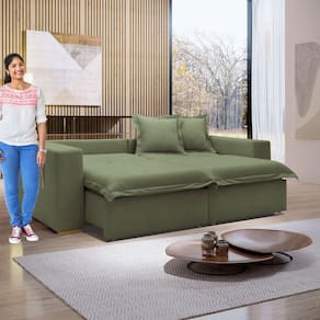O Sofá Arizona é a solução ideal para quem busca praticidade e conforto. Com um design moderno e elegante. Sua principal característica é a capacidade de se transformar facilmente em uma cama espaçosa, oferecendo versatilidade para receber visitas inesperadas ou para momentos de descanso extra. Renove sua sala de estar com o Sofá Arizona e aproveite o melhor do conforto e da funcionalidade em um só lugar. Acompanha Almofadas extras: Sim Almofada do assento: Fixa Almofada do encosto: Removível Altura do assento até o chão: 50 Altura do Braço: 63 Altura do Encosto: 50 Altura dos Pés: 2.5 Ambiente Principal: Sala de Estar Complexidade da Montagem: Baixa: pode ser montado por uma pessoa sozinha Cor: Verde Cor do Produto: Verde Densidade do Assento: D-28 Densidade do Encosto: D-18 Enchimento do Assento: Espuma Enchimento do Braço: Espuma D-28 Enchimento do Encosto: Fibra Siliconada Firmeza do Assento: Firme Itens Inclusos: 1 Sofá e 4 Almofadas Decorativas Linha ou Coleção: Arizona Material dos Pés: Madeira Medida como Cama (A x L x P): 100cmx200cmx132cm Modelo: Retrátil e Reclinável Necessita Montagem: Sim Origem do Produto: Nacional Peso: 94.2 Pet Friendly: Não Possui Baú: Não Possui Percintas Elásticas: Sim Possui Pés: 08 Possui Rodízio: Sim Profundidade Quando Estendido: 150 Quantidade de Itens: 1 Reclinável: Sim Recomendações de Uso, Manutenção e Limpeza: Para limpar, utilize pano seco ou papel absorvente. Não armazenar em local úmido. Não usar produtos químicos como detergente, cloro, alvejantes entre outros. Evitar exposição a luz solar direta por longos períodos. Revestimento do Assento: Boucle Revestimento do Braço: Boucle Revestimento do Encosto: Boucle Rodízio com Trava: Não Sistema de Montagem: Encaixe Tecido Predominante: Não Possui Tipo de Assento: Fixo Tipo de Encosto: Regulável Tipo de Mola: Molas Bonnel Marca: Celflex
