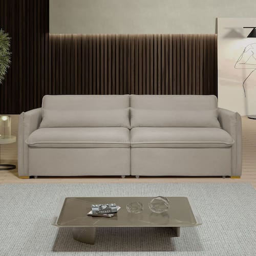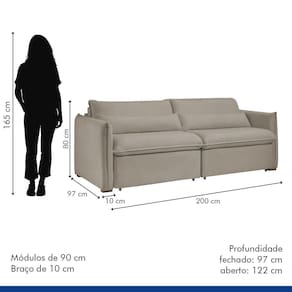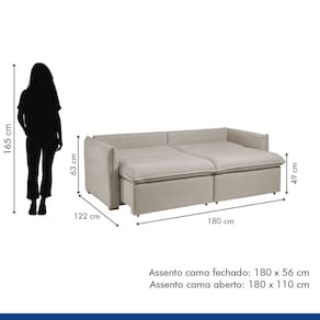 O sofá-cama retrátil e reclinável Aurora combina design moderno e funcionalidade. Ajuste a profundidade do assento e a inclinação do encosto para máximo conforto. Converta-o facilmente em uma cama espaçosa para visitas. Ideal para otimizar espaços pequenos com estilo e praticidade. Transforme sua sala com o conforto e a elegância do Aurora. Produto Montado: Sim Acompanha Almofadas extras: 02 Almofada do assento: Fixa Almofada do encosto: Fixa Altura do assento até o chão: 49.0000 Altura do Encosto: 31 cm Altura dos Pés: 2,5 cm Ambiente Principal: Sala de Estar codigo_ean: 7909903691588 Complexidade da Montagem: Baixa: pode ser montado por uma pessoa sozinha Cor: Bege Claro Cor do Produto: Bege Claro Densidade do Assento: D-28 Enchimento do Assento: Espuma Enchimento do Encosto: Espuma Firmeza do Assento: Firme Itens Inclusos: 1 sofá e manual de instrução. Material dos Pés: Madeira Necessita Montagem: Sim Peso: 63 kg Pet Friendly: Não Possui Percintas Elásticas: Sim Possui Pés: 08 Possui Rodízio: Sim Profundidade Quando Estendido: 122 Recomendações de Uso, Manutenção e Limpeza: Não utilizar produtos químicos. Não utilizar produtos abrasivos. Não molhar. Utilizar pano macio e seco ou levemente umedecido. Resistente à Chuva: Não Revestimento do Braço: Veludo Rodízio com Trava: Não Sistema de Montagem: Encaixe. Suporta Até (kg): 120 kg Tecido Predominante: Veludo Tipo de Encosto: Regulável Tipo de Mola: Não Possui Marca: Celflex