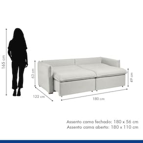 O sofá-cama retrátil e reclinável Aurora combina design moderno e funcionalidade. Ajuste a profundidade do assento e a inclinação do encosto para máximo conforto. Converta-o facilmente em uma cama espaçosa para visitas. Ideal para otimizar espaços pequenos com estilo e praticidade. Transforme sua sala com o conforto e a elegância do Aurora. Produto Montado: Sim Acompanha Almofadas extras: 02 Almofada do assento: Fixa Almofada do encosto: Fixa Altura do assento até o chão: 49.0000 Altura do Encosto: 31 cm Altura dos Pés: 2,5 cm Ambiente Principal: Sala de Estar codigo_ean: 7909903691489 Complexidade da Montagem: Baixa: pode ser montado por uma pessoa sozinha Cor: Gelo Cor do Produto: Gelo Densidade do Assento: D-28 Enchimento do Assento: Espuma Enchimento do Encosto: Espuma Firmeza do Assento: Firme Itens Inclusos: 1 sofá e manual de instrução. Material dos Pés: Madeira Necessita Montagem: Sim Peso: 63 kg Pet Friendly: Não Possui Percintas Elásticas: Sim Possui Pés: 08 Possui Rodízio: Sim Profundidade Quando Estendido: 122 Recomendações de Uso, Manutenção e Limpeza: Não utilizar produtos químicos. Não utilizar produtos abrasivos. Não molhar. Utilizar pano macio e seco ou levemente umedecido. Resistente à Chuva: Não Revestimento do Braço: Boucle Rodízio com Trava: Não Sistema de Montagem: Encaixe. Suporta Até (kg): 120 kg Tipo de Encosto: Regulável Tipo de Mola: Não Possui Marca: Celflex