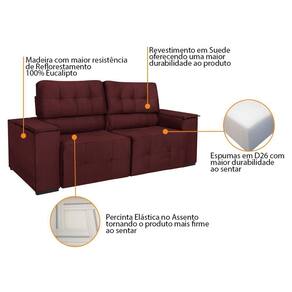 Sofá Cama Retrátil Sala Vicenza Vicenza 210cm Suede Cor Bordô