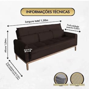 -Profundidade aproximada: 60cm (assento), 90cm (fechado) e 104cm (cama/aberta).