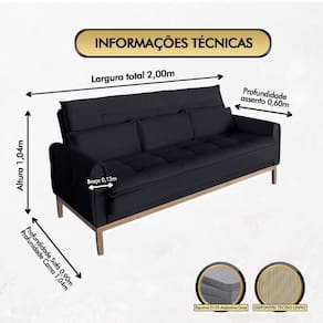 -Profundidade aproximada: 60cm (assento), 90cm (fechado) e 104cm (cama/aberta).