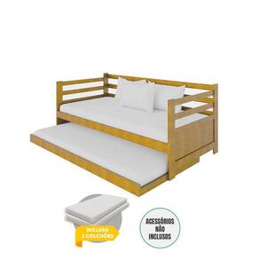 AS IMAGENS SÃO MERAMENTE ILUSTRATIVAS E PODEM SOFRER VARIAÇÕES DE COR E PEQUENOS DETALHES DE ACORDO COM O SEU MONITOR, ILUMINAÇÃO DO AMBIENTE E ATÉ MESMO A SUA PERCEPÇÃO VISUAL.Sofà Cama RÃstico Madeira Enjoy 2 ColchÃes Imbuia