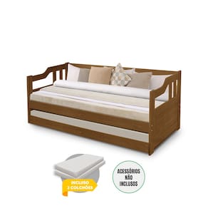 Madeira Com estrado de Ripas de MDF 9mm Barras com 25mm e Braços Laterais com 20mm Espessura da cama auxiliar 22mm Acabamento em Verniz PU Semi Brilho