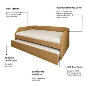 AS IMAGENS SÃO MERAMENTE ILUSTRATIVAS E PODEM SOFRER VARIAÇÕES DE COR E PEQUENOS DETALHES DE ACORDO COM O SEU MONITOR, ILUMINAÇÃO DO AMBIENTE E ATÉ MESMO A SUA PERCEPÇÃO VISUAL.Sofà Cama Solteiro Duo com Cama Auxiliar em Mdf ReforÃado 15mm Amendoa